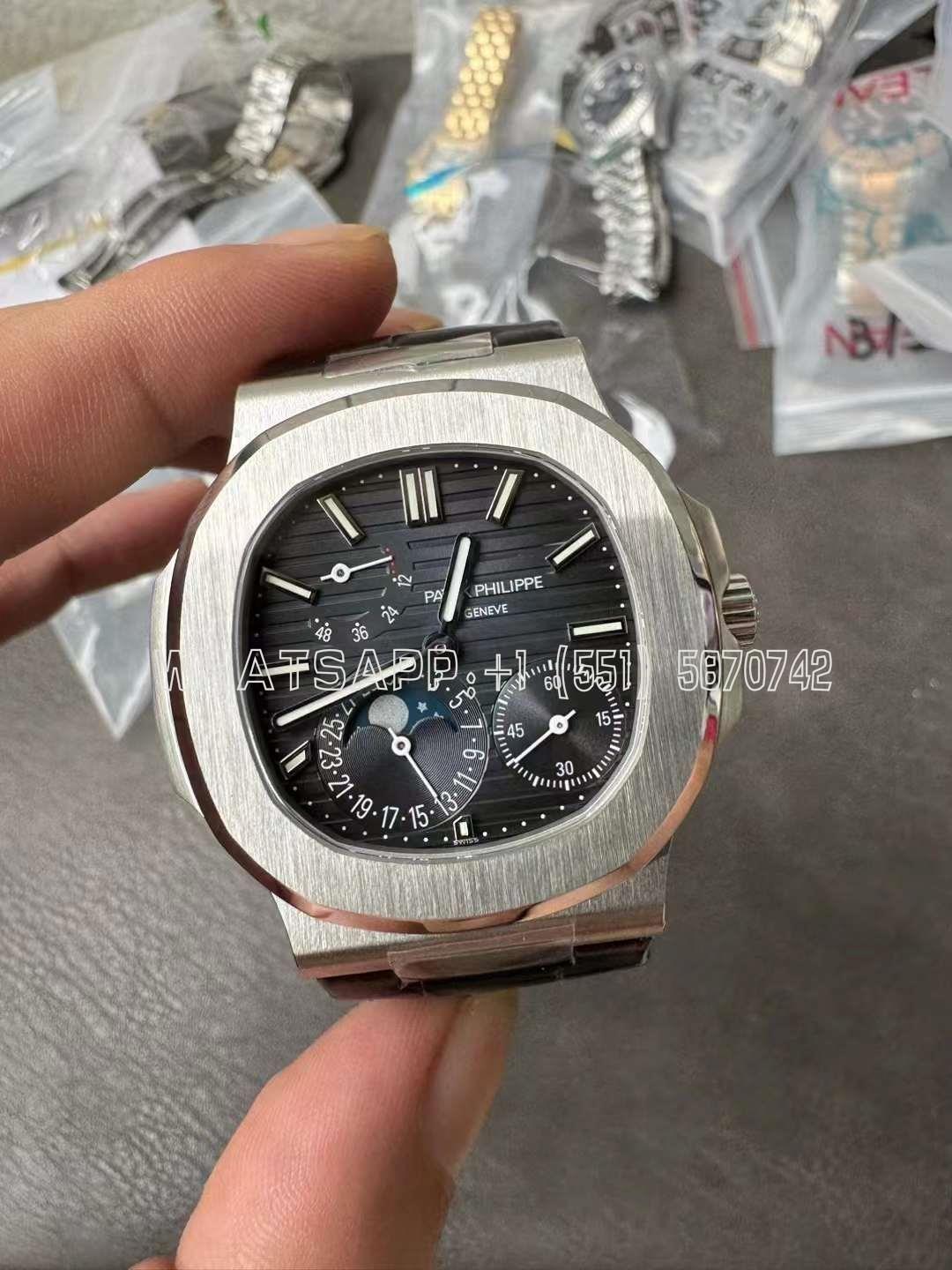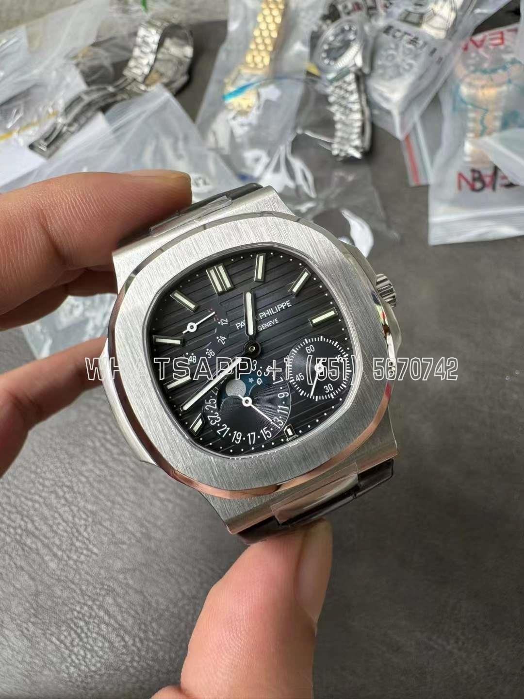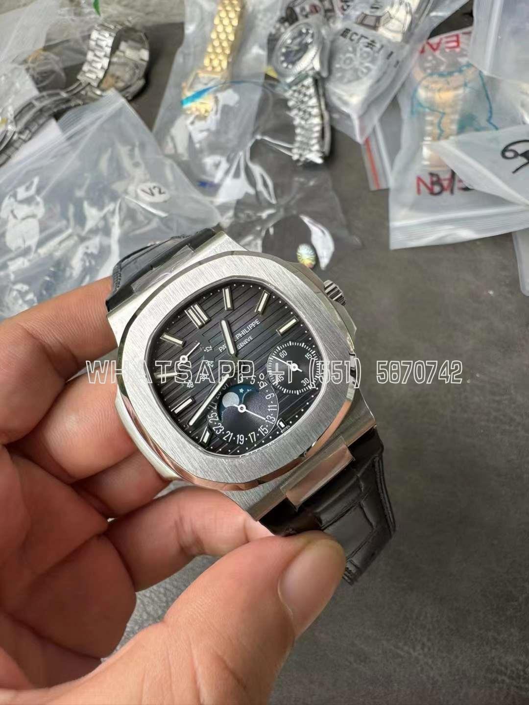 Patek Philippe Nautilus 5712 SS Blue Dial on Black Leather Strap A240 -PPF